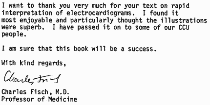 Éste es un extracto de una carta de un administrador de un hospital misionero de enseñanza (en Kenya) el cual recibió una copia complementaria de Rapid Interpretation of EKG's. Cuando el Dr. Dubin supo que ellos no tenían un aparato de ECG